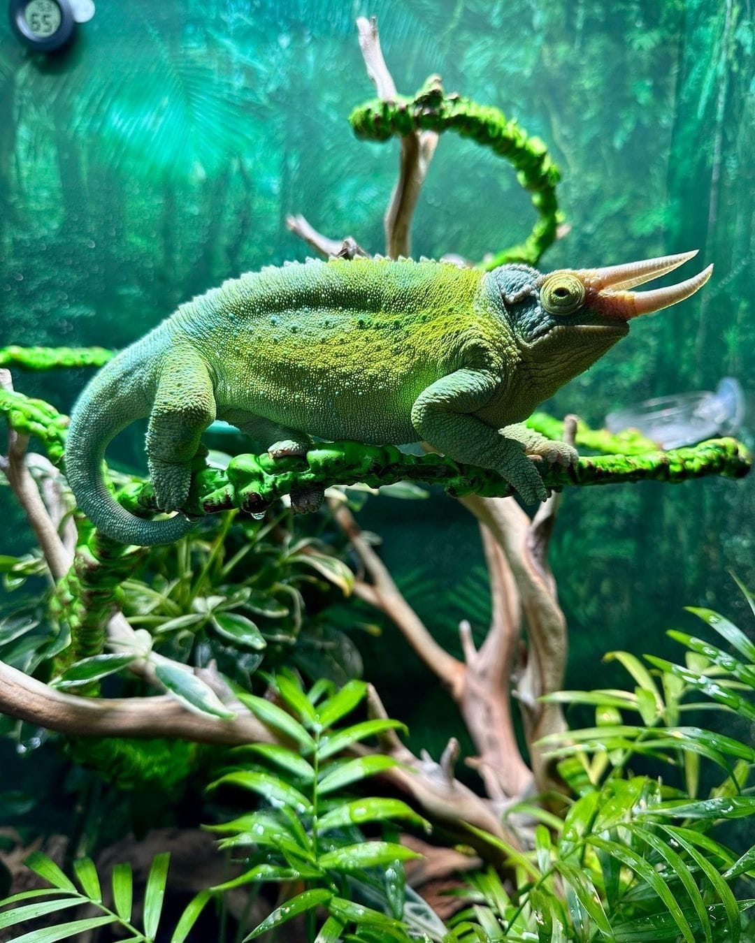 This Chameleon, also known as Jackson’s Three-horned Chameleon or Yellow-Crested Jackson’s Chameleon, comes from Africa in the mountains of Kenya. There are three subspecies. This Chameleon Trioceros jacksonii xantholophus is the nominate species. The other two are the Dwarf Chameleon C. j. merumontanus and the rarely seen Machakos Hills Chameleon (Trioceros jacksonii jacksonii).